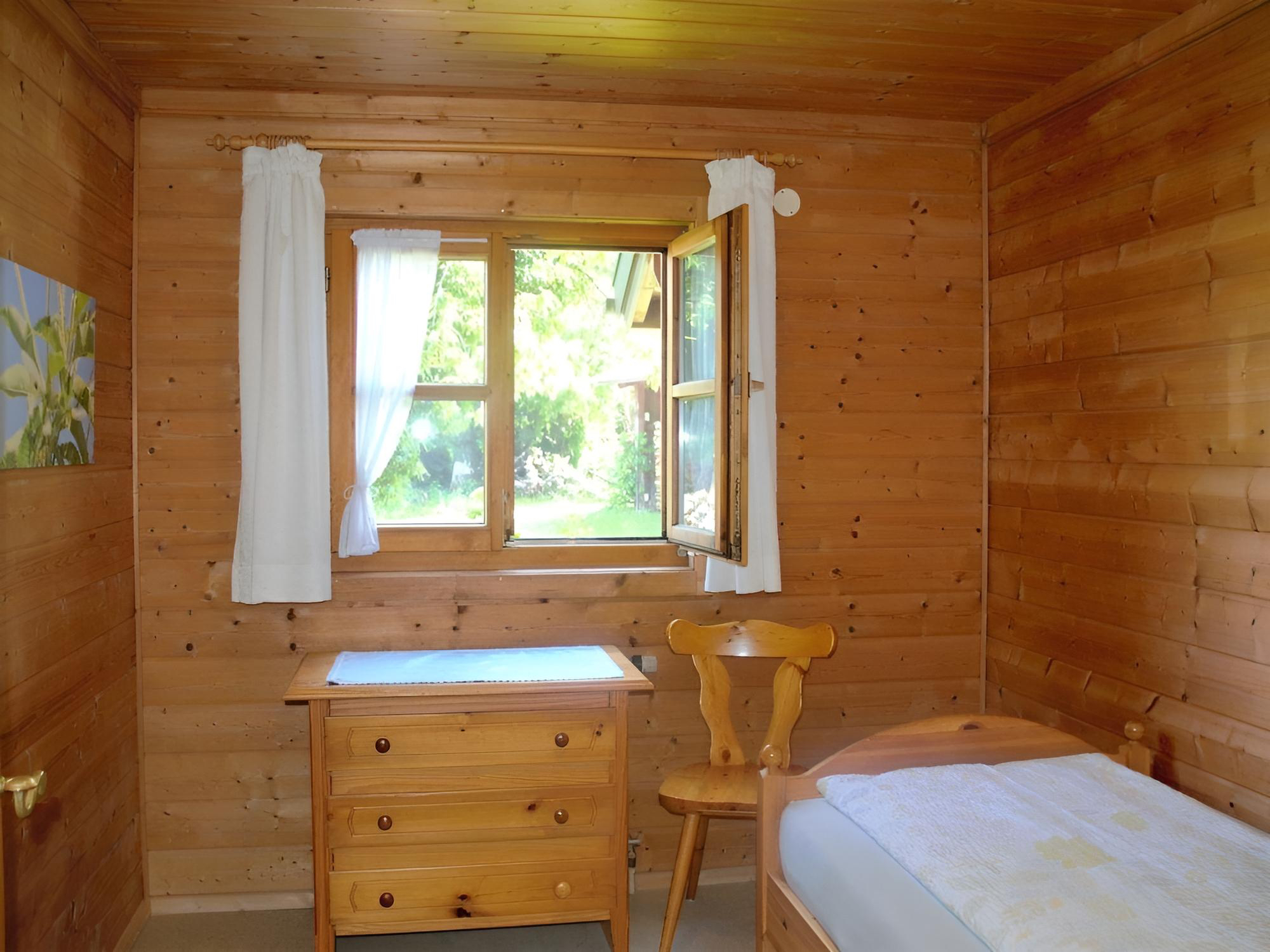 Die Wohnung umfasst ein Doppelzimmer mit zwei Einzelbetten aus Weißtanne (je 2 m x 1 m), sowie ein zusätzliches Einzelzimmer, Wohnraum und eine gut ausgestattete Küchenzeile. Eine gemütliche Eckbank aus Weißtanne lädt zum Verweilen ein. Die geräumige DU/WC kommt ohne Duschwanne und bietet eine Türenbreite von 1 m für leichten Zugang.